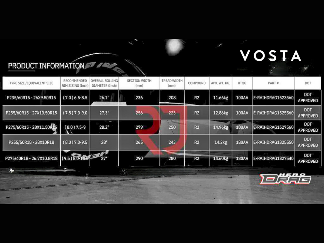 With a treadwear value of 100, the rubber is soft, sticky, and highly flexible. Combined with asymmetrical style design technology, Hero Drag is a new drag tyre that complements your car very well and gives you the confidence the competition cannot.